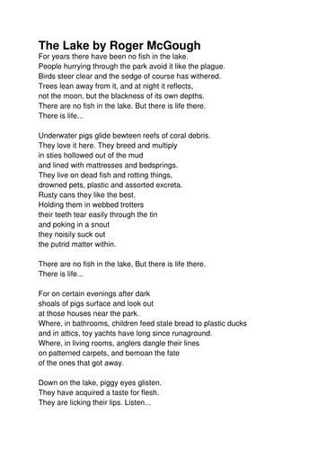 Roger McGough presents poems which use as imagery the sea trees and autumn fruits. The teacher gleefully massacres an entire class of unruly students in order to teach them a lesson with the great irony of the poem being that in the end no students are left alive to. The whistling of the kettle.